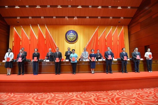向广东省科协荣誉委员、荣誉奖获得者代表颁发证书。