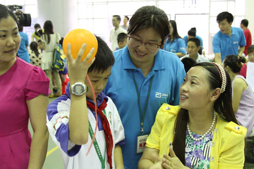 简短的启动仪式后,永岗小学的同学们在雅培志愿者的带领下,开始了他们的科学探索之旅。他们跟父母一起,开心地玩,跟父母开心地探讨,跟志愿者一起学习各种游戏中的科学原理,找寻生活中的各类科学现象,发现科学,学习科学,热爱科学,为欢度“六一”刻上幸福的记号。