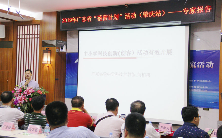 同期,广东省青少年科技中心(广东省科普中心)还联合肇庆市科学技术协会、肇庆市端州区科学技术协会、肇庆市端州区教育局等单位在肇庆市龙禧小学举行了2019年广东省“蓓蕾计划”活动(肇庆站)。活动邀请广东实验中学科技主教练黄柏树老师作了“中小学科技创新(创客)活动有效开展”的专题报告。