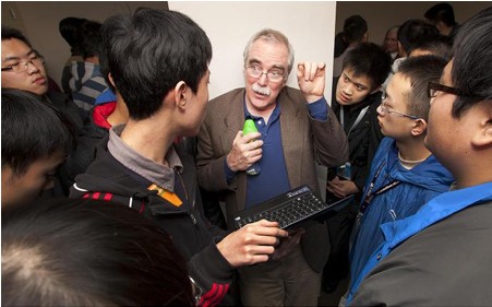 “与大师同行”八位大师之一的美国普林斯顿大学分子生物学教授舒巴赫博士跟参与的学生近距离交流 这次别开生面的创新尝试,由耶鲁大学终身教授兼汕头大学校董林海帆教授发起,并负责策划整项活动,包括构思、内容、筹备以至邀请讲者大师。