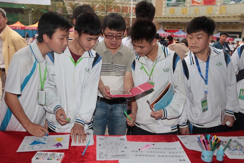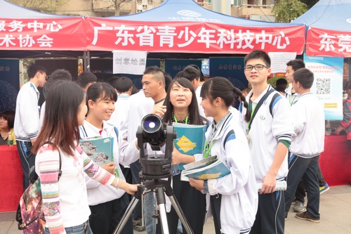 当天上午的主会场活动中,我们架起了望远镜,精心布置了四季星图,开展广场天文科普活动,向参加活动的群众和青少年揭示天空的奥秘。科普游戏“创意绘画”不但让参加的群众亲手创作,还可以通过软件观看自己的作品在手机中跳动,感受现代科技带给人们的乐趣。下午,我们走进怀集校园,向怀集县各镇街师生代表介绍了我省青少年科技教育工作情况和科技发明的小技巧,用身边的事例告诉同学们——科技创新离我们很近,人人都可以参与。讲座精彩纷呈,受到当地师生的热情欢迎。应怀集县第一中学领导的要求,我们临时增讲一场报告,全校300名师生参加。