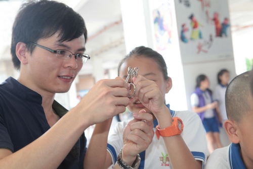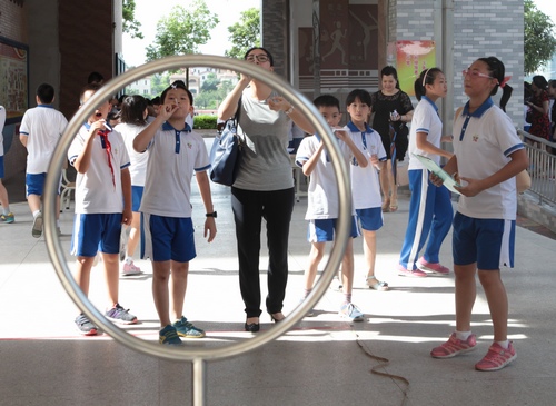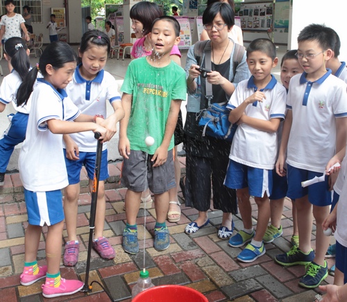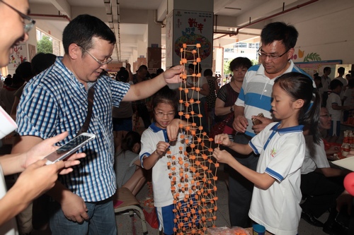 简短的启动仪式后,全体人员参观了江门市紫茶小学的科技节闭幕式展演活动。现场不仅有水火箭、水压吹球、沉宝宝等学校传统项目,还有广东省青少年科技创新实践能力挑战赛的萝卜搭塔、纸箭飞梭、纸牌结构抗风赛、塑料瓶车耐力赛等项目。展演活动精彩纷陈,热闹非凡。参加青少年科学调查体验活动骨干教师培训班的老师们还分组现场PK,完成挑战赛项目的作品设计、制作和比赛。本次启动仪式引起了省内媒体的高度关注,江门电视台、江门日报和广东科技报等各大媒体纷纷报道。