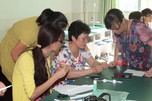 18日下午,全体学员出席2015年广东省青少年调查体验活动启动仪式,参观紫茶小学的校园科技节展演活动,并在一小时内,教师们分组完成第3届广东省青少年科技创新实践能力挑战赛——纸箭飞梭、纸牌结构抗风赛的作品设计和制作,现场PK,各展风姿。