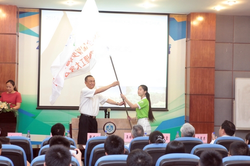 省科协党组书记、常务副主席何真代表管理办公室向中山大学授旗