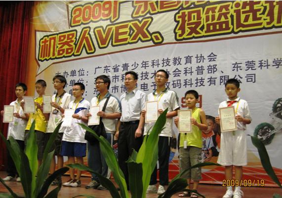 9月18-19日, 2009广东省青少年机器人VEX、投篮选拔赛在东莞科学馆举行,吸引了来自全省39所学校共53支机器人队伍前来参加。